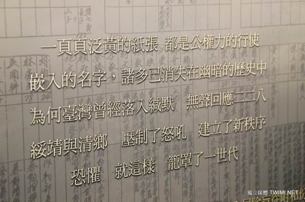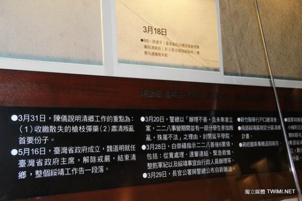 張炎憲教授指出,如展場內有一張蔣介石的手寫稿公文,那是一封正式的公文,內容為『要求陳儀負責嚴禁軍政人員實施報復』,張炎憲表示此公文展出明顯是在為國民黨脫罪,為蔣介石化妝,試圖誤導民眾以為是蔣介石的德政,但事實上蔣介石下令派兵進行屠殺的公文卻未展出,這要讓二二八遺族看到情何以堪!
